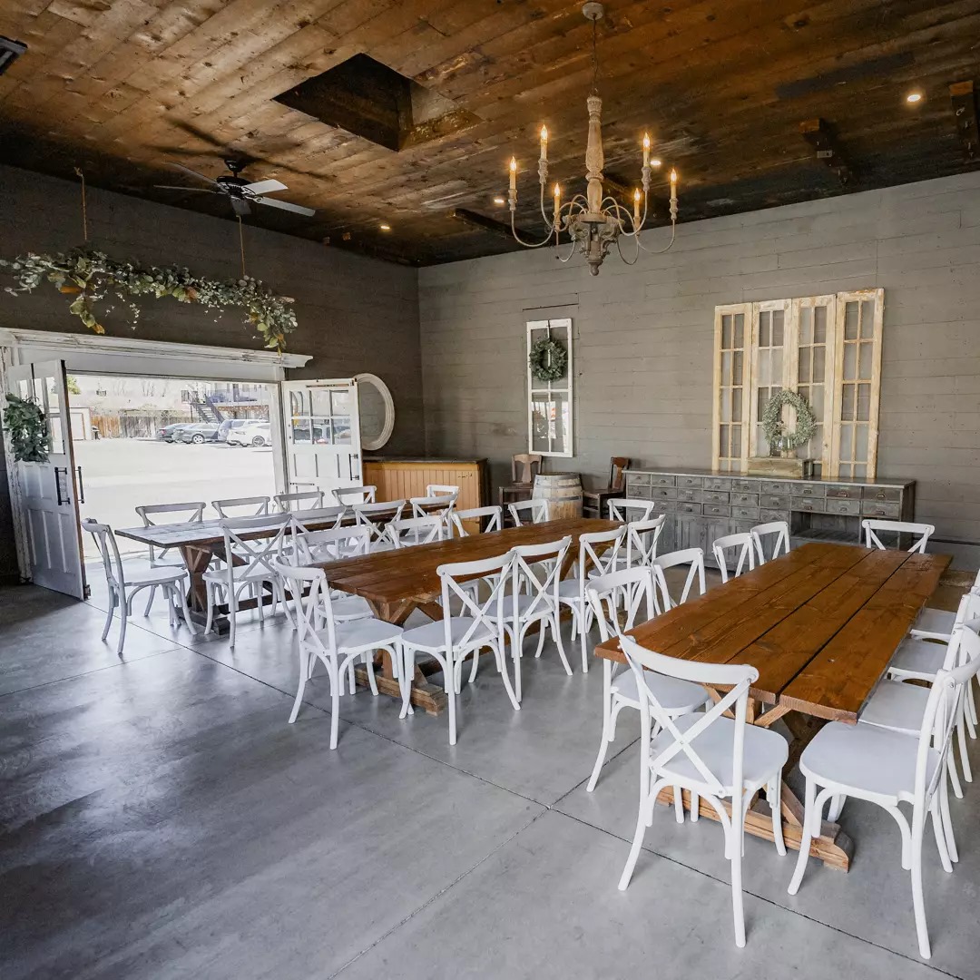 Indoor & outdoor venue, approved vendor list, indoor dance area, wifi, sound system, on-site décor including farm tables, antique counters for bar/buffet set-ups, antique doors, wine barrels and market lights available for use in the yard.