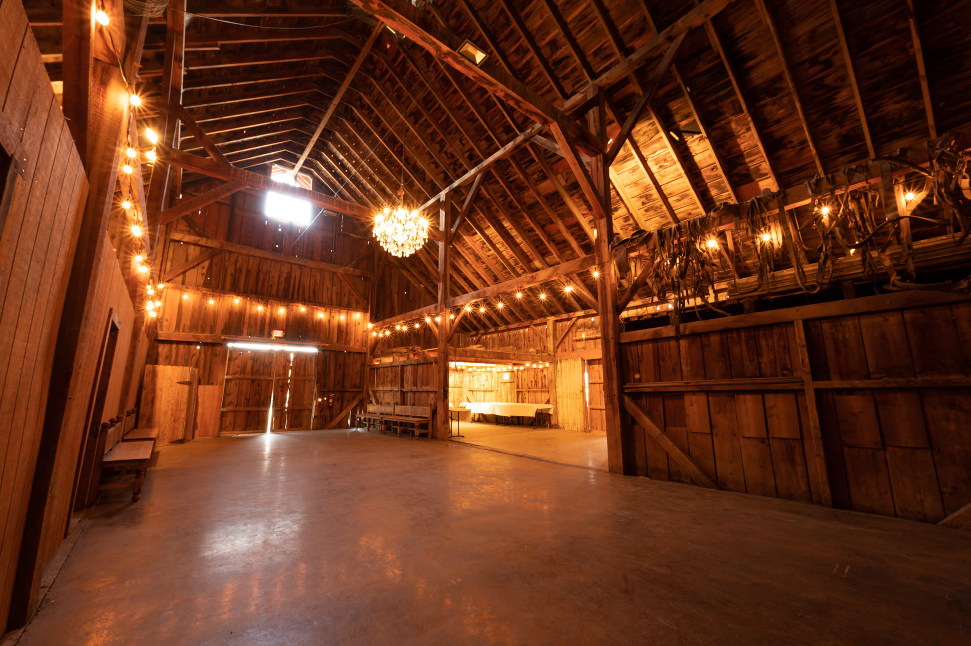 Our historic barn, built in the 1800's, features a crystal chandelier, market lighting both inside and in the outside manger area and a cement floor so there are no dust issues. There is adequate power throughout for additional lighting, DJ, music, and bands...absolutely perfect for dining and dancing the night away! The barn will comfortably accommodate 80-100 and has a secluded area for your libations. Tenting options outside of the barn extend your reception area to 200+ guests and there is on-site parking for all guests. Charming details throughout the property include vintage ranch equipment and wagons, tack equipment in the barn, lovely gardens, waterfall in The Back Lawn, hay bales (upon availability) and so much more.